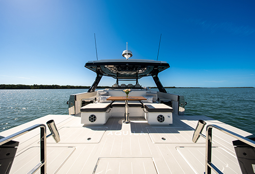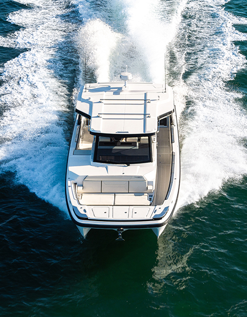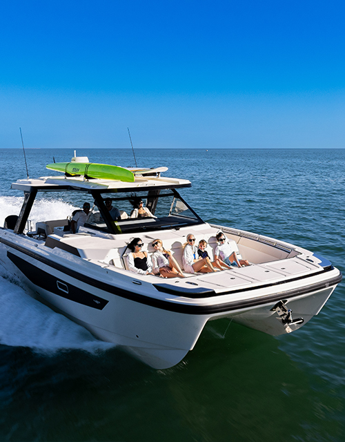 Aquila Catamarans was founded on a belief that better was possible; and that the best way to get Out There was to think out there. With decades of boatbuilding experience and a global collaboration of award-winning designers and engineers, Aquila has become the world leader in performance-driven, innovation-packed catamarans. The Aquila 45 Sport power catamaran delivers the speed, openness and versatility to make it all happen.