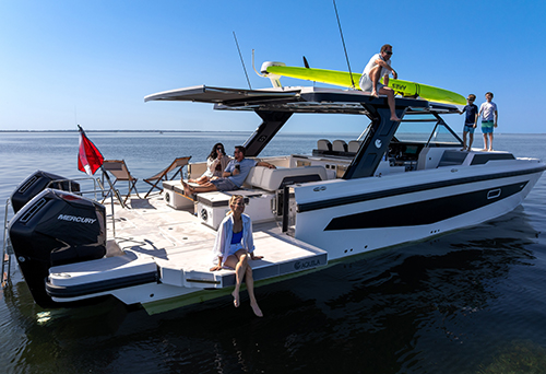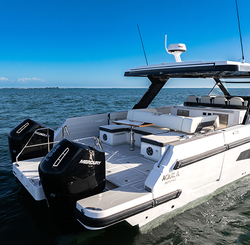 Exceptional performance thanks to the twin 600-hp Mercury Verado V12 engines, delivering speeds exceeding 50 mph.