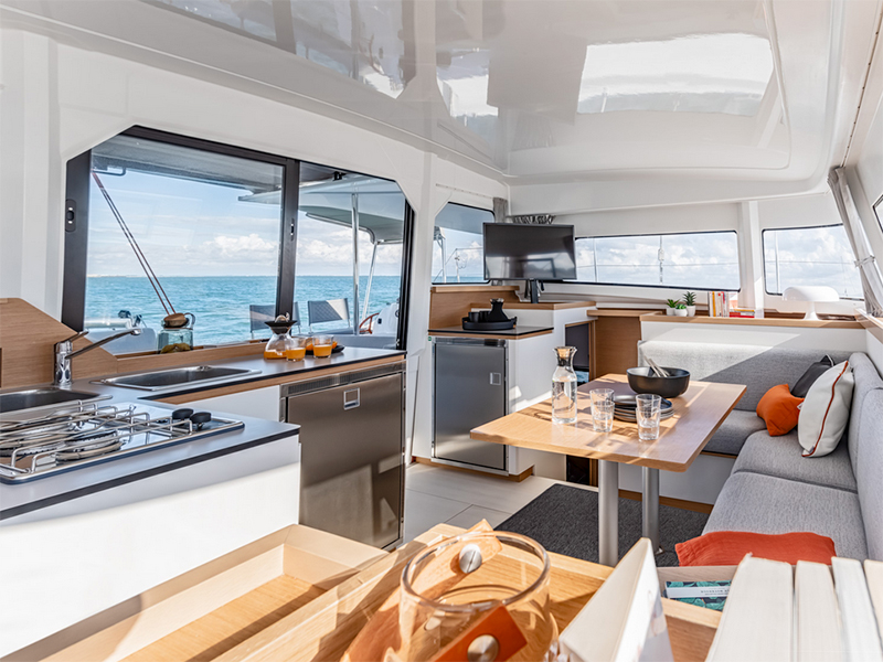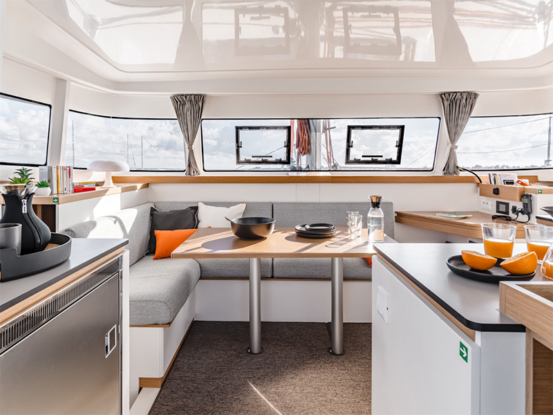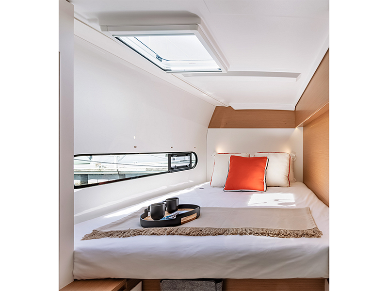 Excess 11, a catamaran of rare elegance and comfort, designed for unforgettable sailing experiences. With three cabins and two bathrooms, this model offers all the space and privacy you need, making it perfect for romantic getaways or vacations with friends. Inside, you’ll find a spacious and bright dinette, furnished with a comfortable, inviting sofa where you can relax after a day of sun and sea. The kitchen is equipped with all necessary amenities, ready to meet any culinary need, from sunset dinners to ocean-view breakfasts. The two guest cabins, tastefully furnished and equipped with spacious wooden wardrobes, ensure your guests a unique experience at sea, without sacrificing any comfort. The master cabin, elegant and spacious, is a true luxury retreat with a private bathroom and shower, allowing you to enjoy moments of absolute tranquility.
